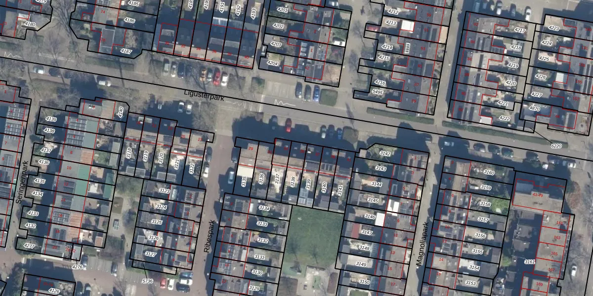 Het perceel waarop Ligusterpark 35 staat heeft een oppervlakte van 114 m². Dit is een middelgroot perceel. De perceeloppervlakte wordt geregistreerd door het Kadaster. Gedetailleerde informatie over de maten van dit perceel kunt u vinden in het rapport Kadastrale kaart met maatvoering van Ligusterpark 35.