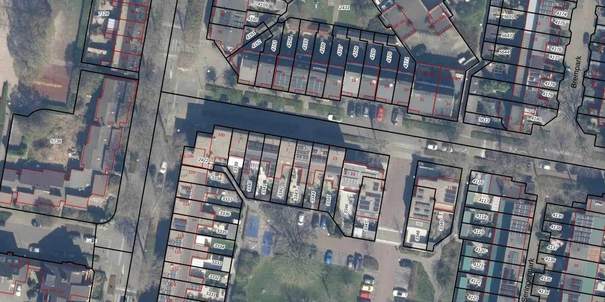 Gebruik de zoekbalk of klik op een perceel voor informatie over de adressen binnen dit perceel.