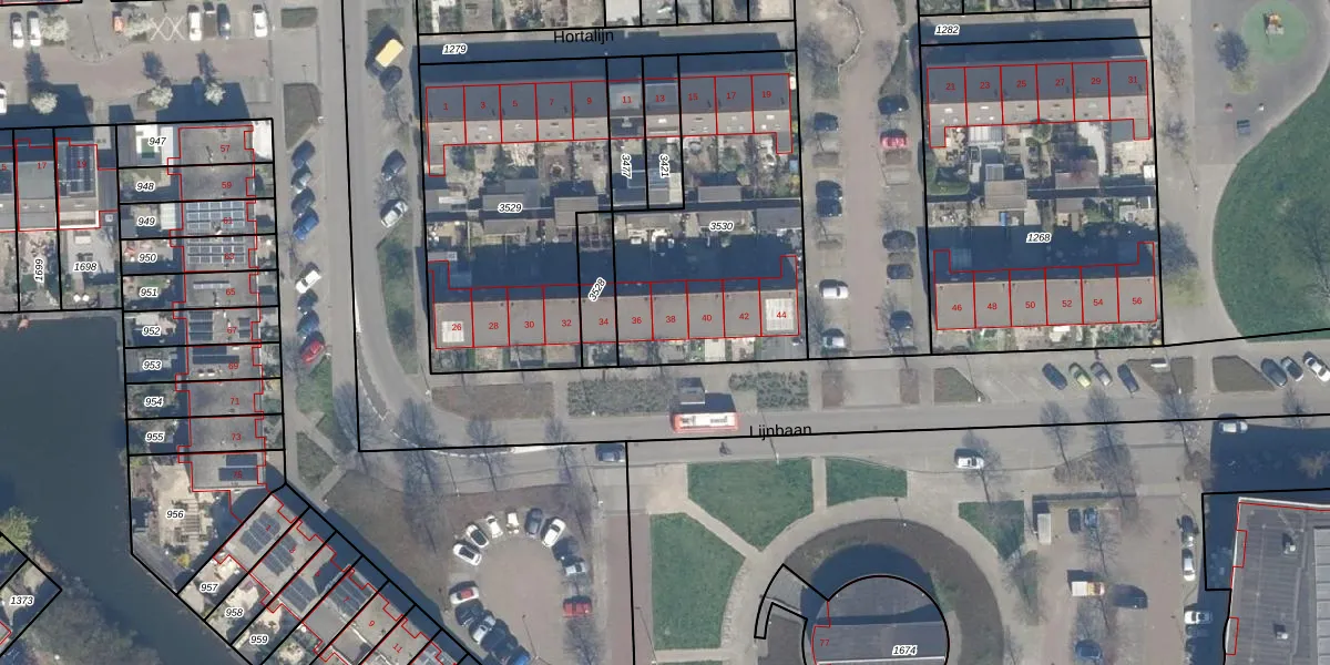 Het perceel waarop Lijnbaan 38 staat heeft een oppervlakte van 1079 m². Dit is een zeer groot perceel. De perceeloppervlakte wordt geregistreerd door het Kadaster. Gedetailleerde informatie over de maten van dit perceel kunt u vinden in het rapport Kadastrale kaart met maatvoering van Lijnbaan 38.