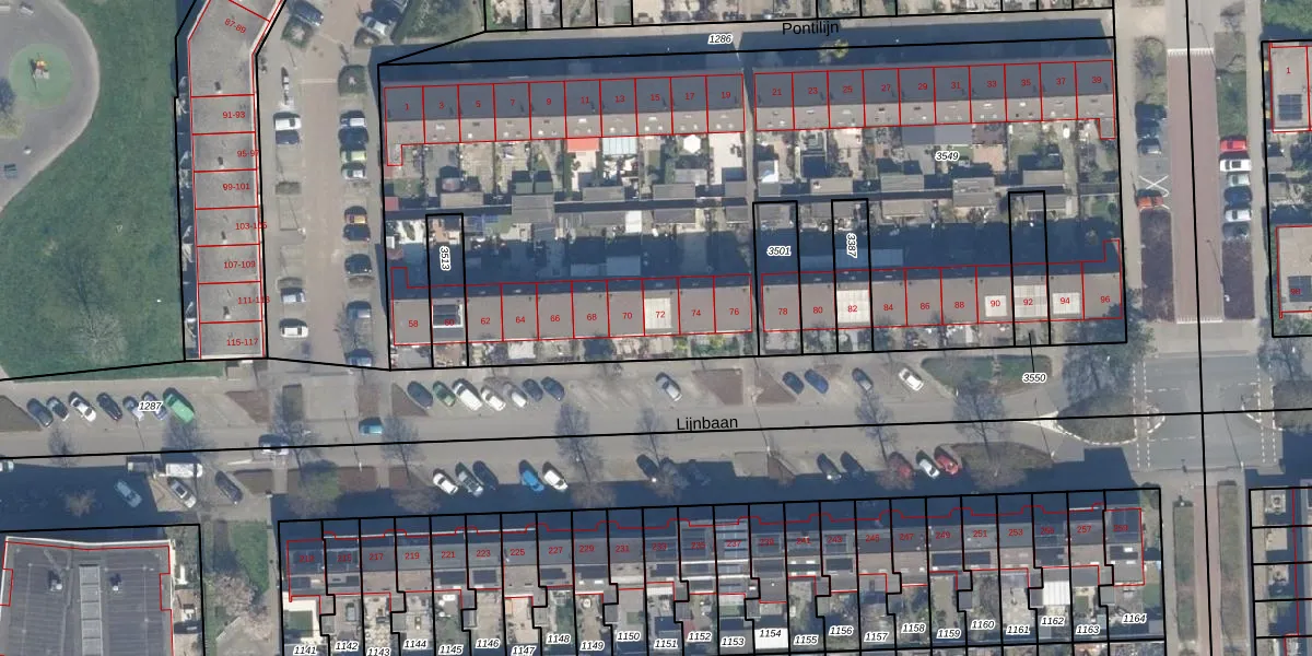 Het perceel waarop Lijnbaan 72 staat heeft een oppervlakte van 4696 m². Dit is een zeer groot perceel. De perceeloppervlakte wordt geregistreerd door het Kadaster. Gedetailleerde informatie over de maten van dit perceel kunt u vinden in het rapport Kadastrale kaart met maatvoering van Lijnbaan 72.