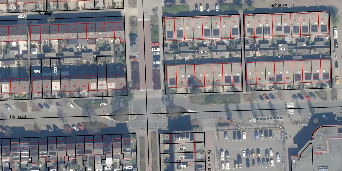 Het perceel waarop Lijnbaan 98 staat heeft een oppervlakte van 2039 m². Dit is een zeer groot perceel. De perceeloppervlakte wordt geregistreerd door het Kadaster. Gedetailleerde informatie over de maten van dit perceel kunt u vinden in het rapport Kadastrale kaart met maatvoering van Lijnbaan 98.