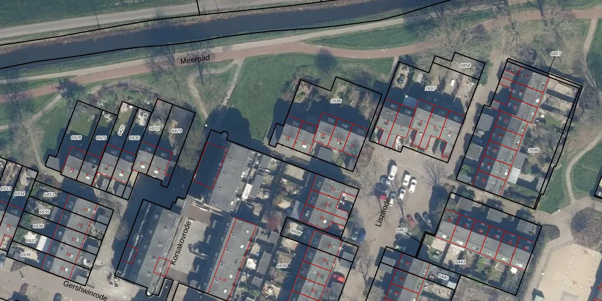 Het perceel waarop Lisztrode 17 staat heeft een oppervlakte van 706 m². Dit is een groot perceel. De perceeloppervlakte wordt geregistreerd door het Kadaster. Gedetailleerde informatie over de maten van dit perceel kunt u vinden in het rapport Kadastrale kaart met maatvoering van Lisztrode 17.
