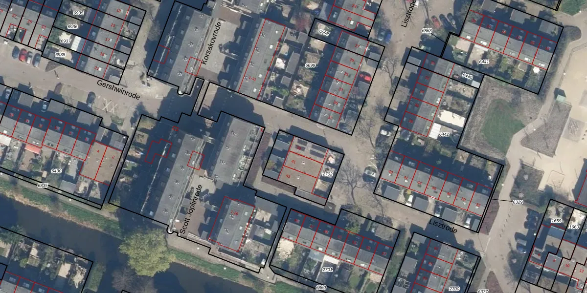 Het perceel waarop Lisztrode 39 staat heeft een oppervlakte van 415 m². Dit is een groot perceel. De perceeloppervlakte wordt geregistreerd door het Kadaster. Gedetailleerde informatie over de maten van dit perceel kunt u vinden in het rapport Kadastrale kaart met maatvoering van Lisztrode 39.