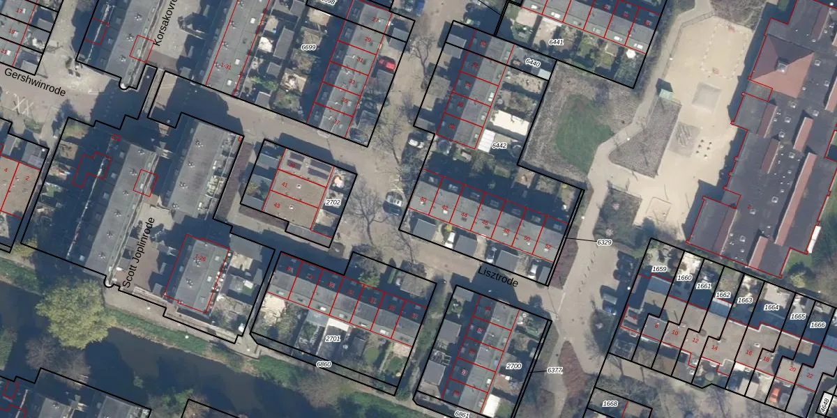 Het perceel waarop Lisztrode 40 staat heeft een oppervlakte van 1489 m². Dit is een zeer groot perceel. De perceeloppervlakte wordt geregistreerd door het Kadaster. Gedetailleerde informatie over de maten van dit perceel kunt u vinden in het rapport Kadastrale kaart met maatvoering van Lisztrode 40.