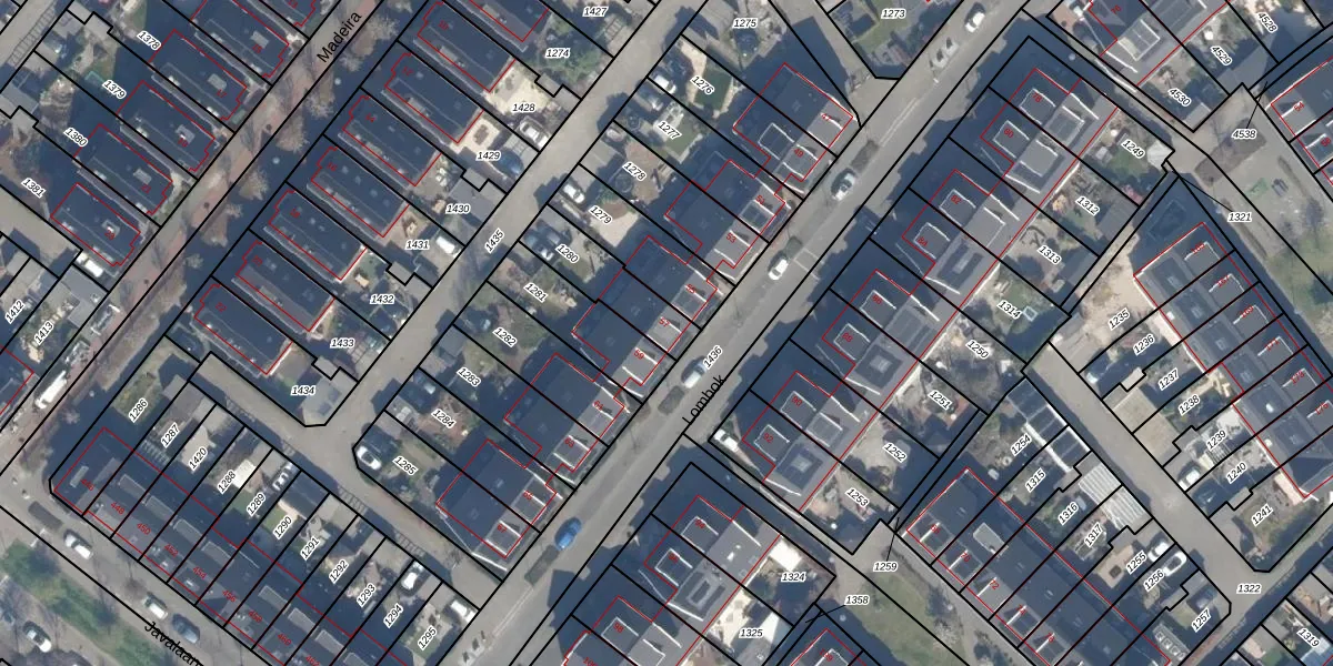 Het perceel waarop Lombok 57 staat heeft een oppervlakte van 197 m². Dit is een middelgroot perceel. De perceeloppervlakte wordt geregistreerd door het Kadaster. Gedetailleerde informatie over de maten van dit perceel kunt u vinden in het rapport Kadastrale kaart met maatvoering van Lombok 57.