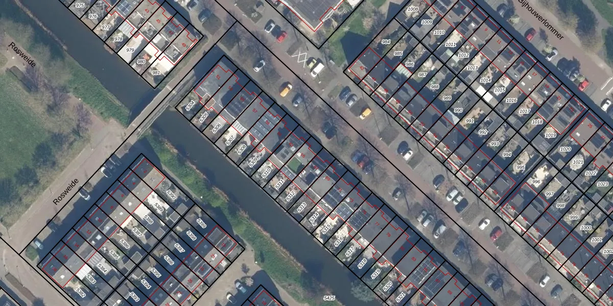 Gebruik de zoekbalk of klik op een perceel voor informatie over de adressen binnen dit perceel.