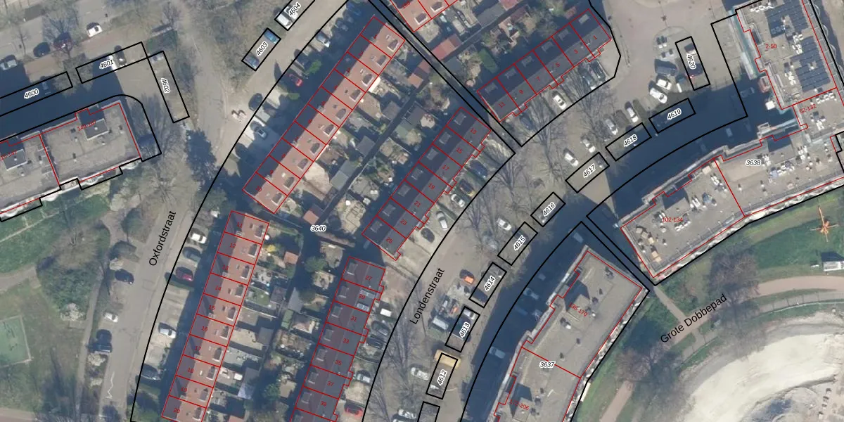 Het perceel waarop Londenstraat 21 staat heeft een oppervlakte van 5381 m². Dit is een zeer groot perceel. De perceeloppervlakte wordt geregistreerd door het Kadaster. Gedetailleerde informatie over de maten van dit perceel kunt u vinden in het rapport Kadastrale kaart met maatvoering van Londenstraat 21.