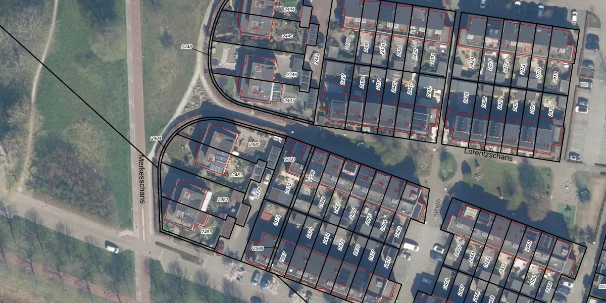 Het perceel waarop Lorentzschans 30 staat heeft een oppervlakte van 196 m². Dit is een middelgroot perceel. De perceeloppervlakte wordt geregistreerd door het Kadaster. Gedetailleerde informatie over de maten van dit perceel kunt u vinden in het rapport Kadastrale kaart met maatvoering van Lorentzschans 30.