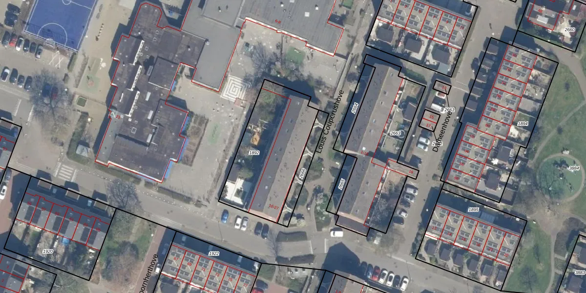 Het perceel waarop Louis Couperushove 18 staat heeft een oppervlakte van 923 m². Dit is een groot perceel. De perceeloppervlakte wordt geregistreerd door het Kadaster. Gedetailleerde informatie over de maten van dit perceel kunt u vinden in het rapport Kadastrale kaart met maatvoering van Louis Couperushove 18.