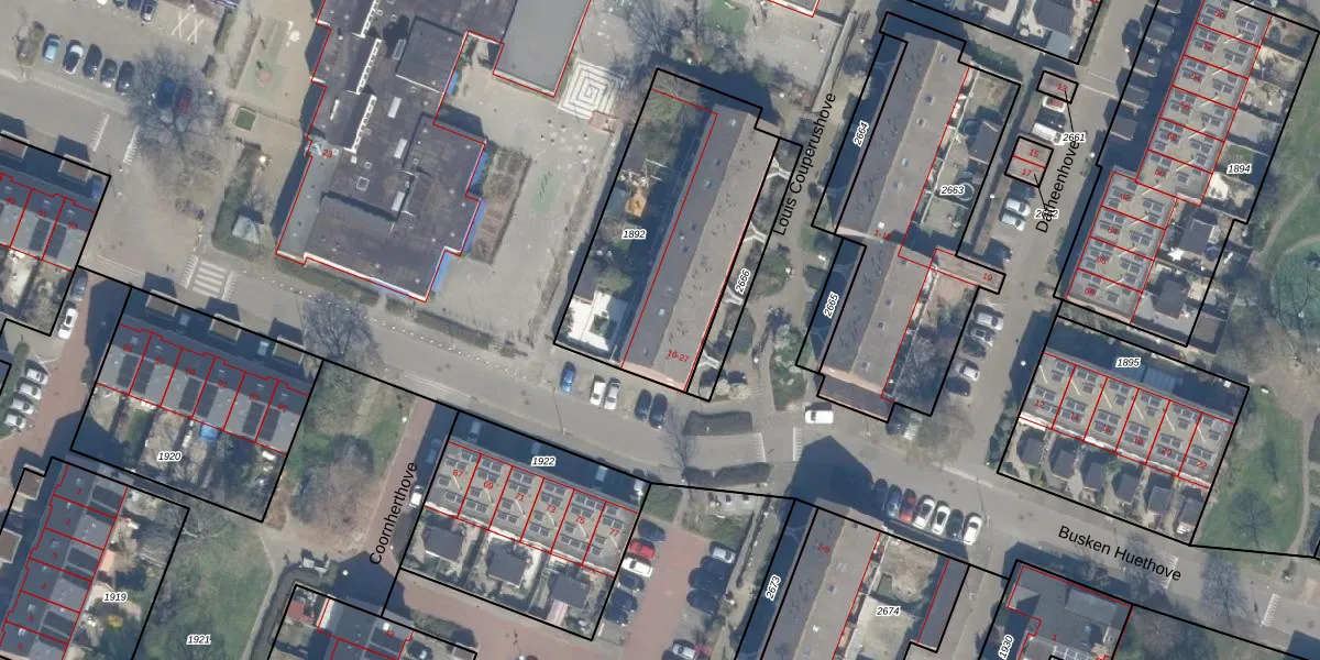 Het perceel waarop Louis Couperushove 21 staat heeft een oppervlakte van 923 m². Dit is een groot perceel. De perceeloppervlakte wordt geregistreerd door het Kadaster. Gedetailleerde informatie over de maten van dit perceel kunt u vinden in het rapport Kadastrale kaart met maatvoering van Louis Couperushove 21.