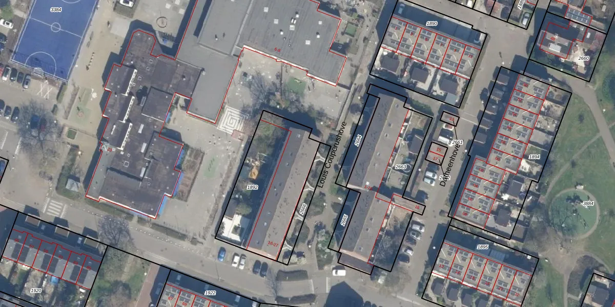 Het perceel waarop Louis Couperushove 27 staat heeft een oppervlakte van 923 m². Dit is een groot perceel. De perceeloppervlakte wordt geregistreerd door het Kadaster. Gedetailleerde informatie over de maten van dit perceel kunt u vinden in het rapport Kadastrale kaart met maatvoering van Louis Couperushove 27.