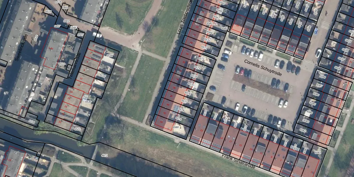 Gebruik de zoekbalk of klik op een perceel voor informatie over de adressen binnen dit perceel.