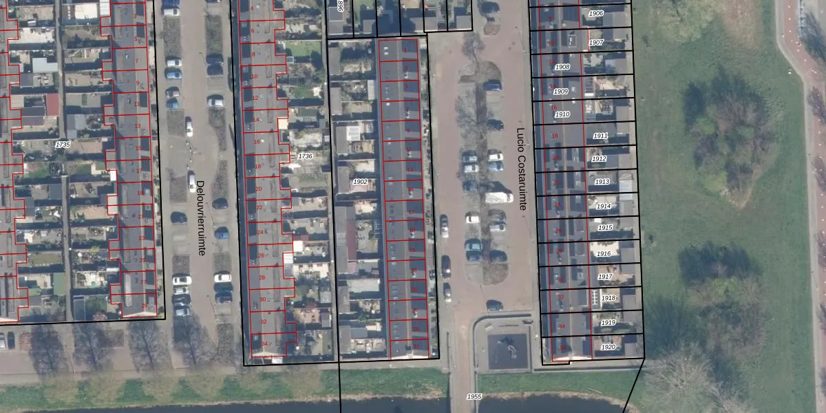 Het perceel waarop Lucio Costaruimte 17 staat heeft een oppervlakte van 1903 m². Dit is een zeer groot perceel. De perceeloppervlakte wordt geregistreerd door het Kadaster. Gedetailleerde informatie over de maten van dit perceel kunt u vinden in het rapport Kadastrale kaart met maatvoering van Lucio Costaruimte 17.