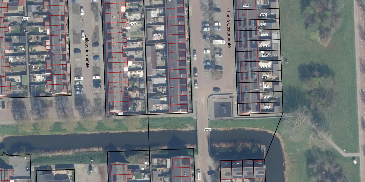 Het perceel waarop Lucio Costaruimte 27 staat heeft een oppervlakte van 1903 m². Dit is een zeer groot perceel. De perceeloppervlakte wordt geregistreerd door het Kadaster. Gedetailleerde informatie over de maten van dit perceel kunt u vinden in het rapport Kadastrale kaart met maatvoering van Lucio Costaruimte 27.