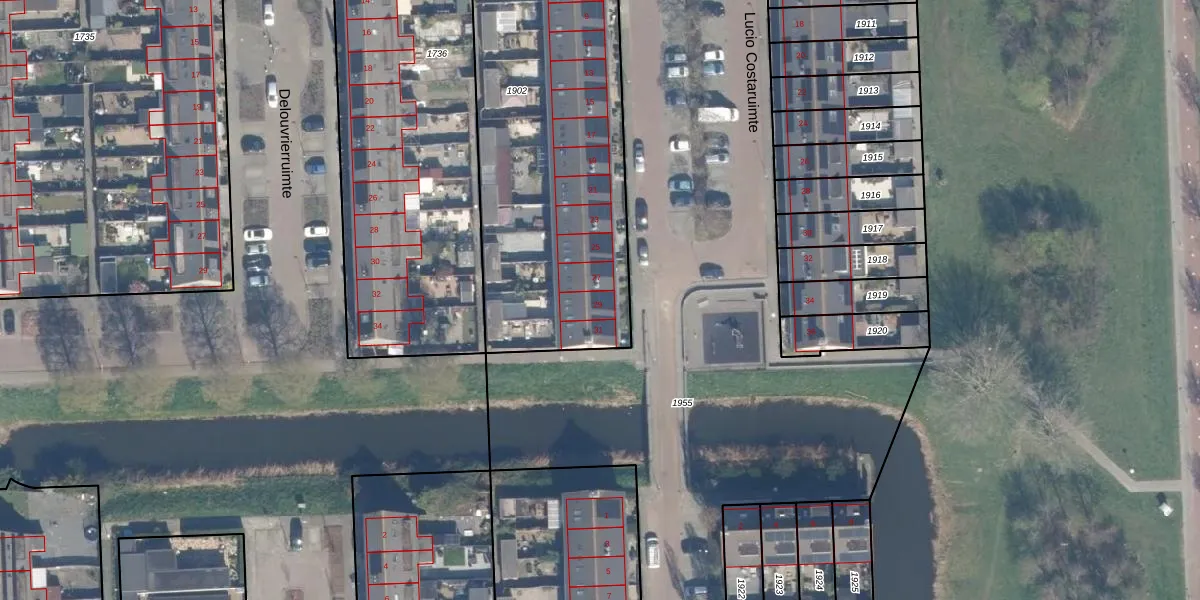 Het perceel waarop Lucio Costaruimte 29 staat heeft een oppervlakte van 1903 m². Dit is een zeer groot perceel. De perceeloppervlakte wordt geregistreerd door het Kadaster. Gedetailleerde informatie over de maten van dit perceel kunt u vinden in het rapport Kadastrale kaart met maatvoering van Lucio Costaruimte 29.