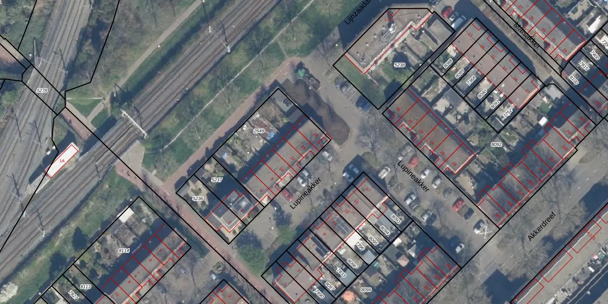 Het perceel waarop Lupineakker 14 staat heeft een oppervlakte van 754 m². Dit is een groot perceel. De perceeloppervlakte wordt geregistreerd door het Kadaster. Gedetailleerde informatie over de maten van dit perceel kunt u vinden in het rapport Kadastrale kaart met maatvoering van Lupineakker 14.