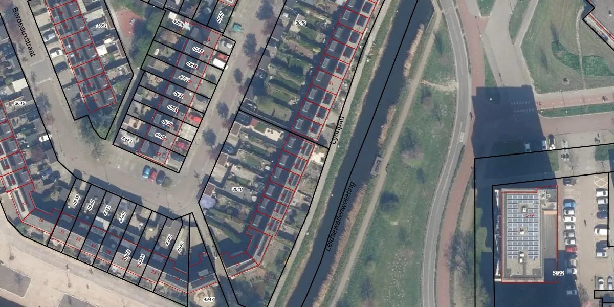 Het perceel waarop Lyonpad 15 staat heeft een oppervlakte van 1638 m². Dit is een zeer groot perceel. De perceeloppervlakte wordt geregistreerd door het Kadaster. Gedetailleerde informatie over de maten van dit perceel kunt u vinden in het rapport Kadastrale kaart met maatvoering van Lyonpad 15.