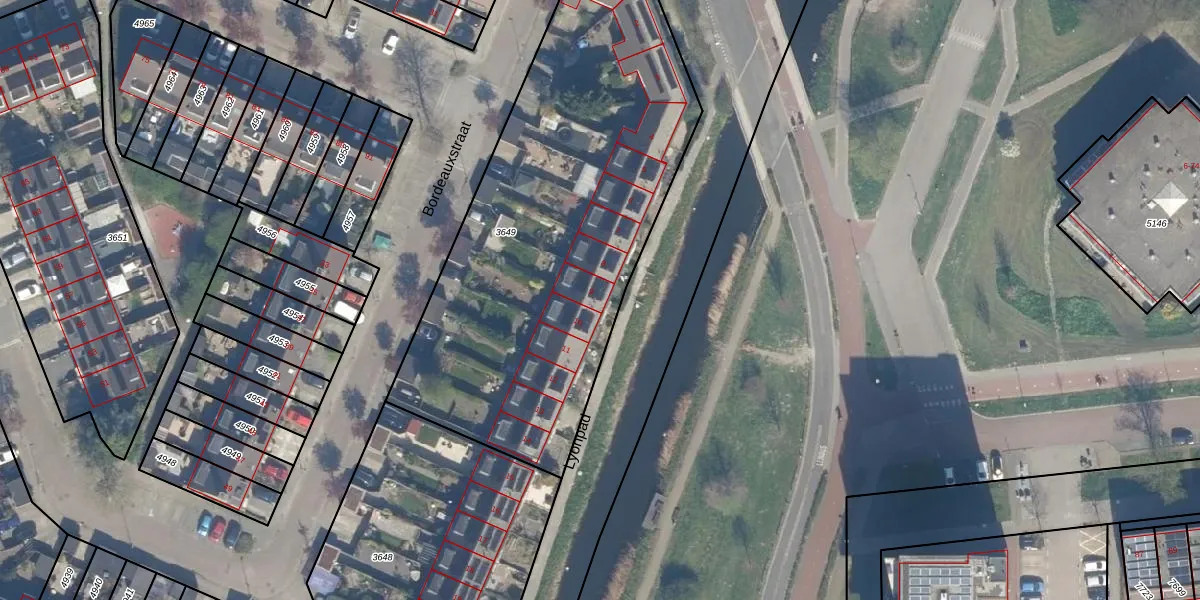 Het perceel waarop Lyonpad 9 staat heeft een oppervlakte van 2320 m². Dit is een zeer groot perceel. De perceeloppervlakte wordt geregistreerd door het Kadaster. Gedetailleerde informatie over de maten van dit perceel kunt u vinden in het rapport Kadastrale kaart met maatvoering van Lyonpad 9.