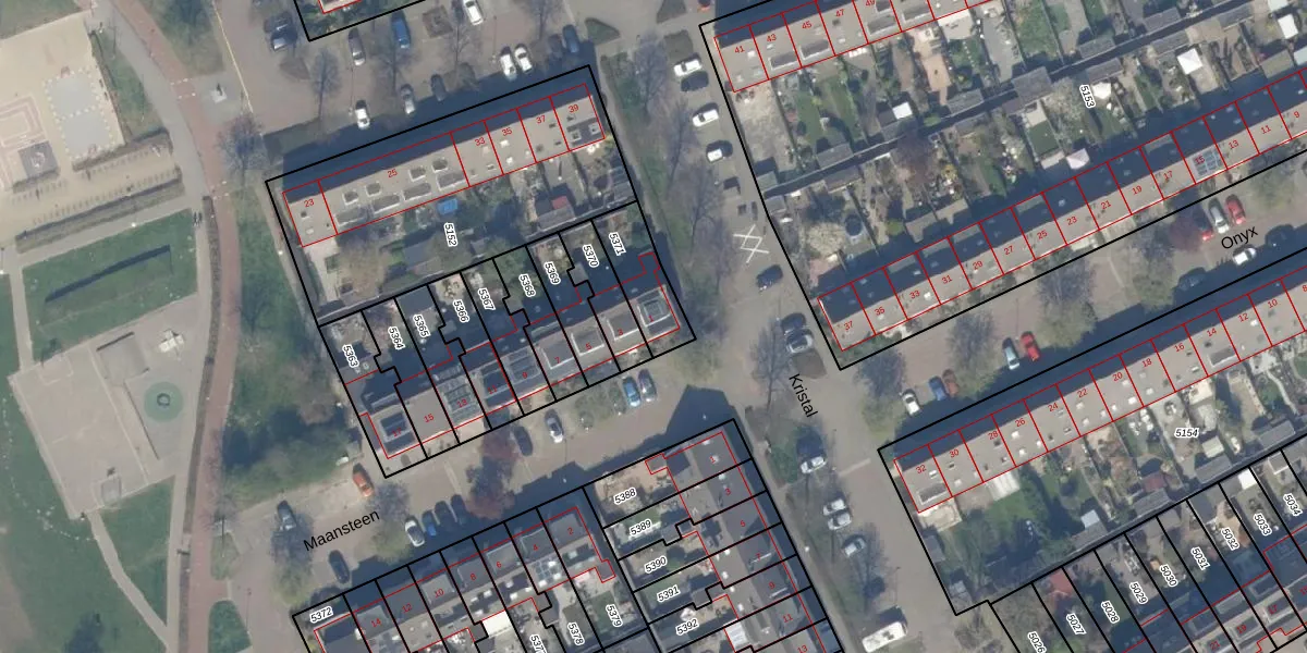 Het perceel waarop Maansteen 1 staat heeft een oppervlakte van 166 m². Dit is een middelgroot perceel. De perceeloppervlakte wordt geregistreerd door het Kadaster. Gedetailleerde informatie over de maten van dit perceel kunt u vinden in het rapport Kadastrale kaart met maatvoering van Maansteen 1.