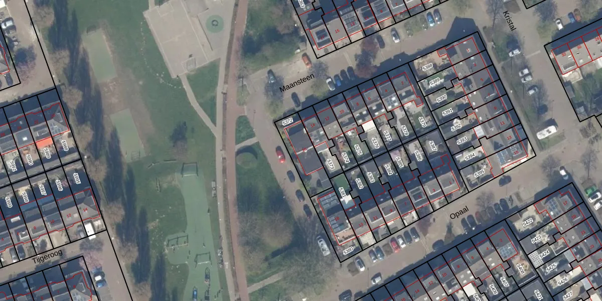 Het perceel waarop Maansteen 16 staat heeft een oppervlakte van 233 m². Dit is een middelgroot perceel. De perceeloppervlakte wordt geregistreerd door het Kadaster. Gedetailleerde informatie over de maten van dit perceel kunt u vinden in het rapport Kadastrale kaart met maatvoering van Maansteen 16.