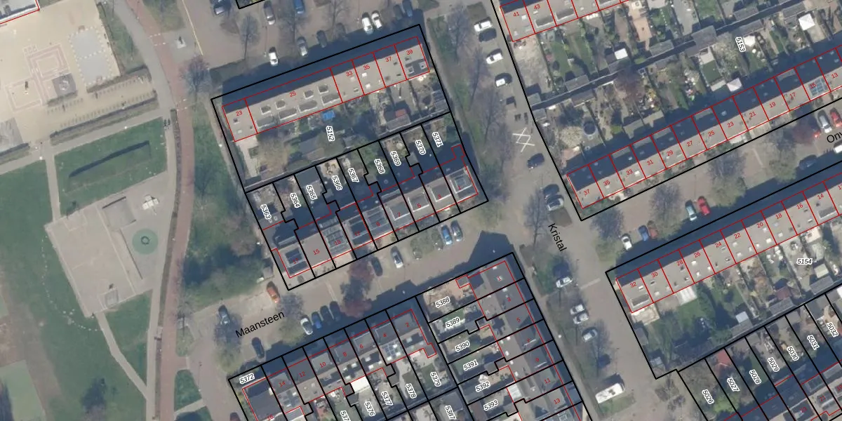 Het perceel waarop Maansteen 5 staat heeft een oppervlakte van 128 m². Dit is een middelgroot perceel. De perceeloppervlakte wordt geregistreerd door het Kadaster. Gedetailleerde informatie over de maten van dit perceel kunt u vinden in het rapport Kadastrale kaart met maatvoering van Maansteen 5.