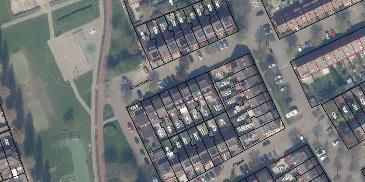 Gebruik de zoekbalk of klik op een perceel voor informatie over de adressen binnen dit perceel.