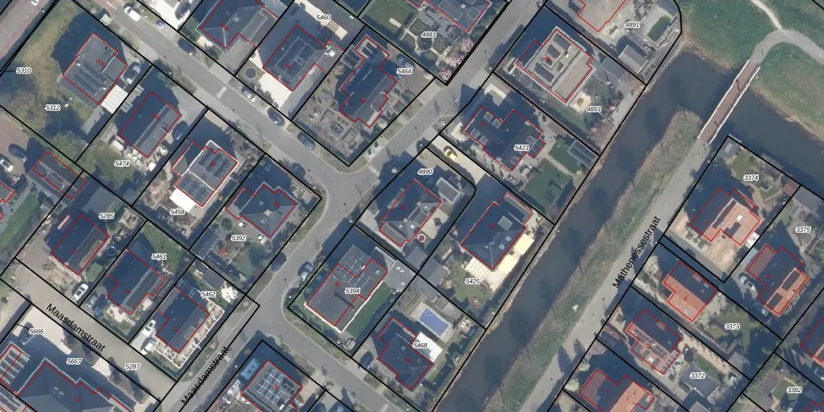 Het perceel waarop Maasdamstraat 33 staat heeft een oppervlakte van 464 m². Dit is een groot perceel. De perceeloppervlakte wordt geregistreerd door het Kadaster. Gedetailleerde informatie over de maten van dit perceel kunt u vinden in het rapport Kadastrale kaart met maatvoering van Maasdamstraat 33.