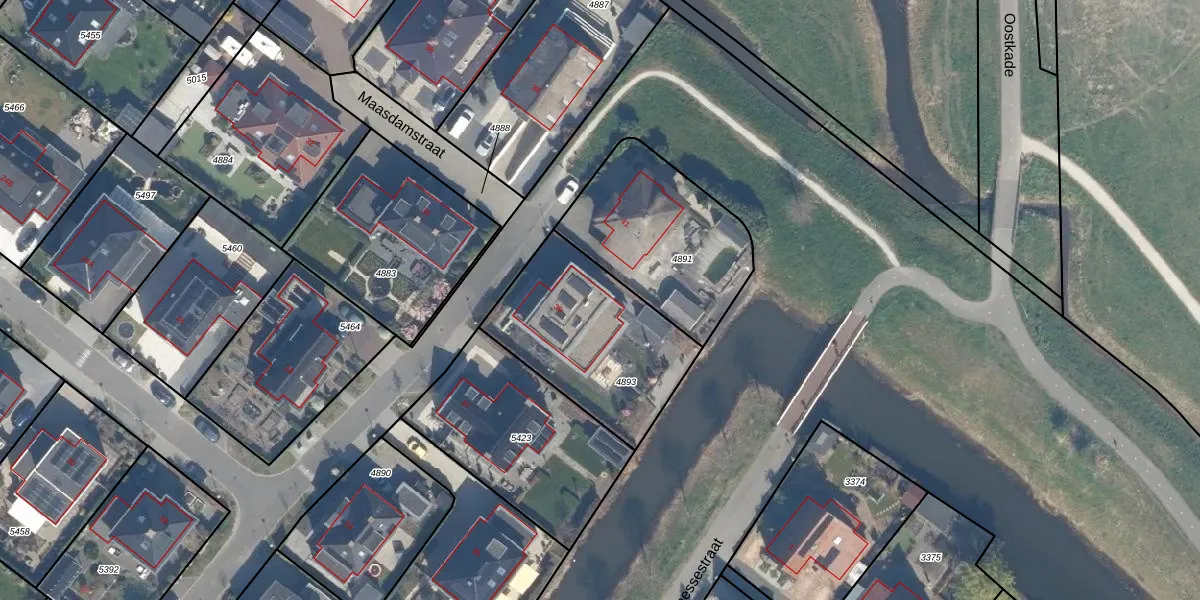 Het perceel waarop Maasdamstraat 39 staat heeft een oppervlakte van 665 m². Dit is een groot perceel. De perceeloppervlakte wordt geregistreerd door het Kadaster. Gedetailleerde informatie over de maten van dit perceel kunt u vinden in het rapport Kadastrale kaart met maatvoering van Maasdamstraat 39.