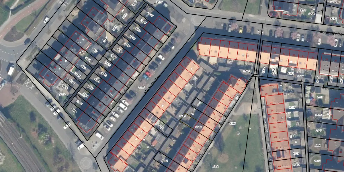 Het perceel waarop Maasstroom 8 staat heeft een oppervlakte van 3982 m². Dit is een zeer groot perceel. De perceeloppervlakte wordt geregistreerd door het Kadaster. Gedetailleerde informatie over de maten van dit perceel kunt u vinden in het rapport Kadastrale kaart met maatvoering van Maasstroom 8.