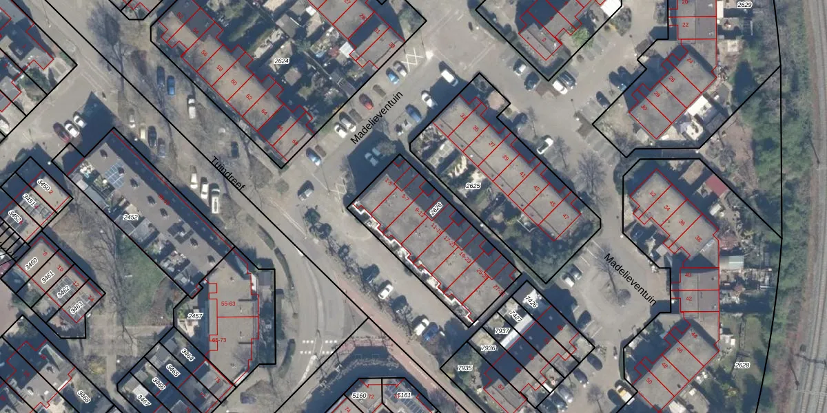 Het perceel waarop Madelieventuin 13 staat heeft een oppervlakte van 757 m². Dit is een groot perceel. De perceeloppervlakte wordt geregistreerd door het Kadaster. Gedetailleerde informatie over de maten van dit perceel kunt u vinden in het rapport Kadastrale kaart met maatvoering van Madelieventuin 13.