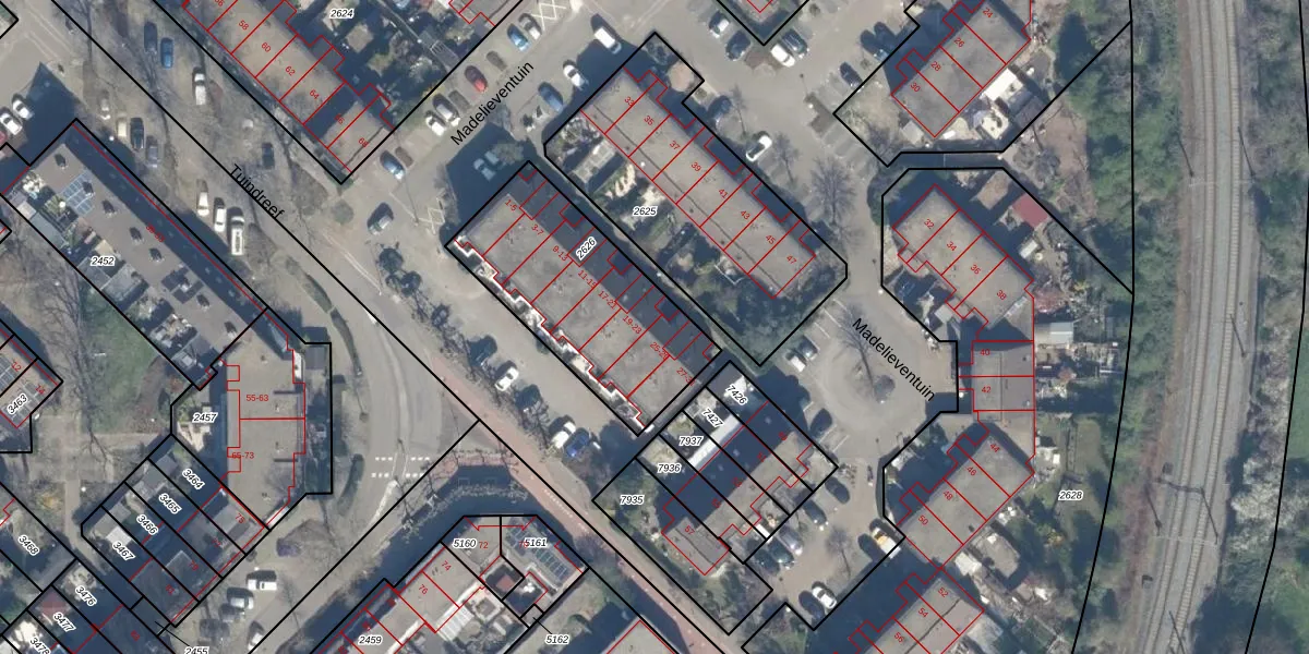 Het perceel waarop Madelieventuin 25 staat heeft een oppervlakte van 757 m². Dit is een groot perceel. De perceeloppervlakte wordt geregistreerd door het Kadaster. Gedetailleerde informatie over de maten van dit perceel kunt u vinden in het rapport Kadastrale kaart met maatvoering van Madelieventuin 25.