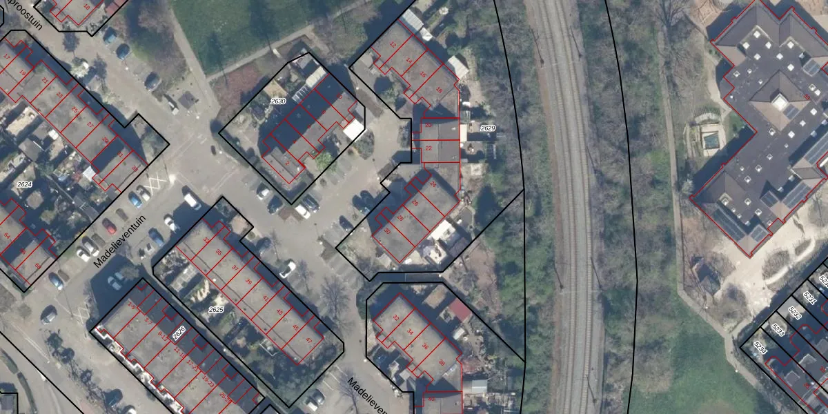 Het perceel waarop Madelieventuin 26 staat heeft een oppervlakte van 2076 m². Dit is een zeer groot perceel. De perceeloppervlakte wordt geregistreerd door het Kadaster. Gedetailleerde informatie over de maten van dit perceel kunt u vinden in het rapport Kadastrale kaart met maatvoering van Madelieventuin 26.