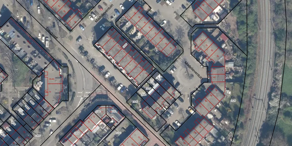 Het perceel waarop Madelieventuin 31 staat heeft een oppervlakte van 757 m². Dit is een groot perceel. De perceeloppervlakte wordt geregistreerd door het Kadaster. Gedetailleerde informatie over de maten van dit perceel kunt u vinden in het rapport Kadastrale kaart met maatvoering van Madelieventuin 31.