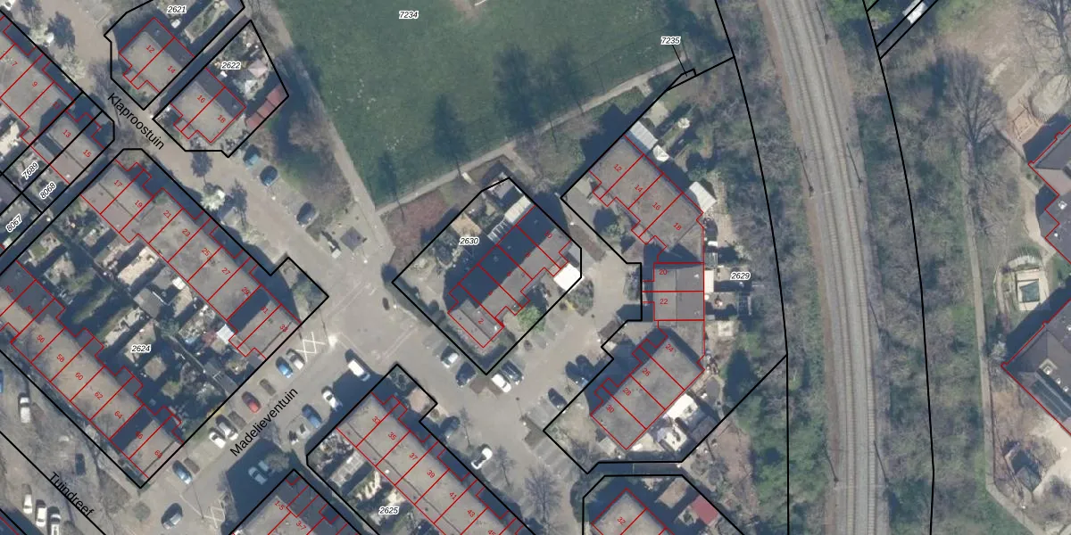 Het perceel waarop Madelieventuin 8 staat heeft een oppervlakte van 706 m². Dit is een groot perceel. De perceeloppervlakte wordt geregistreerd door het Kadaster. Gedetailleerde informatie over de maten van dit perceel kunt u vinden in het rapport Kadastrale kaart met maatvoering van Madelieventuin 8.