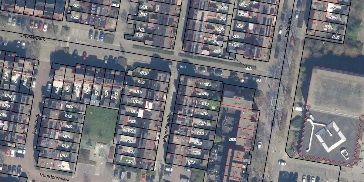 Gebruik de zoekbalk of klik op een perceel voor informatie over de adressen binnen dit perceel.