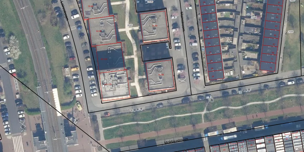 Het perceel waarop Mainstroom 77 staat heeft een oppervlakte van 4579 m². Dit is een zeer groot perceel. De perceeloppervlakte wordt geregistreerd door het Kadaster. Gedetailleerde informatie over de maten van dit perceel kunt u vinden in het rapport Kadastrale kaart met maatvoering van Mainstroom 77.