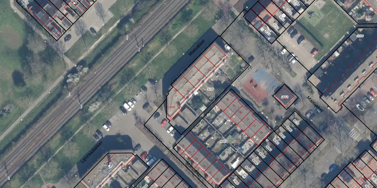 Het perceel waarop Maisakker 43 staat heeft een oppervlakte van 1092 m². Dit is een zeer groot perceel. De perceeloppervlakte wordt geregistreerd door het Kadaster. Gedetailleerde informatie over de maten van dit perceel kunt u vinden in het rapport Kadastrale kaart met maatvoering van Maisakker 43.