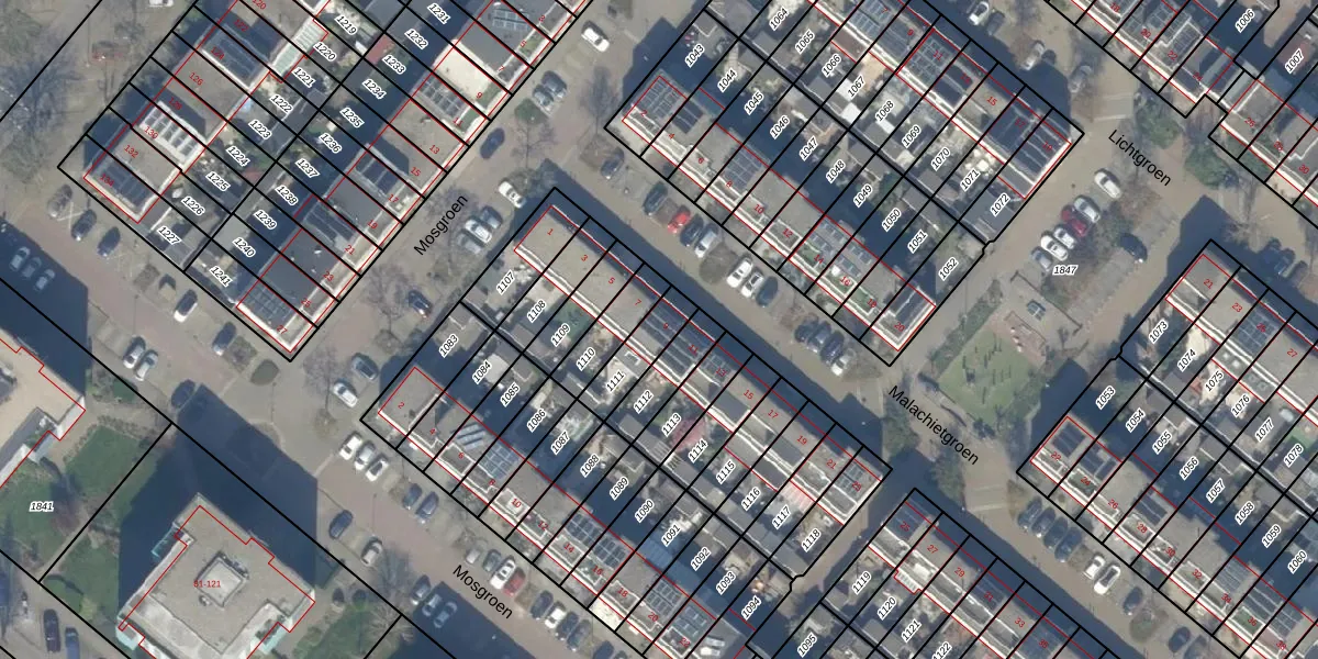 Gebruik de zoekbalk of klik op een perceel voor informatie over de adressen binnen dit perceel.