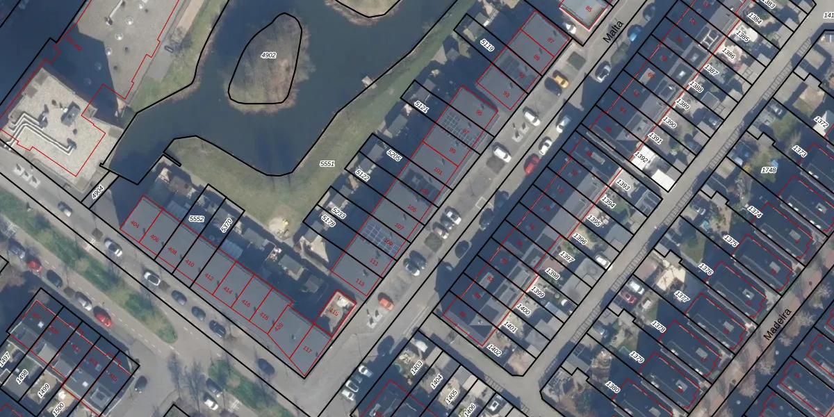 Het perceel waarop Malta 105 staat heeft een oppervlakte van 125 m². Dit is een middelgroot perceel. De perceeloppervlakte wordt geregistreerd door het Kadaster. Gedetailleerde informatie over de maten van dit perceel kunt u vinden in het rapport Kadastrale kaart met maatvoering van Malta 105.