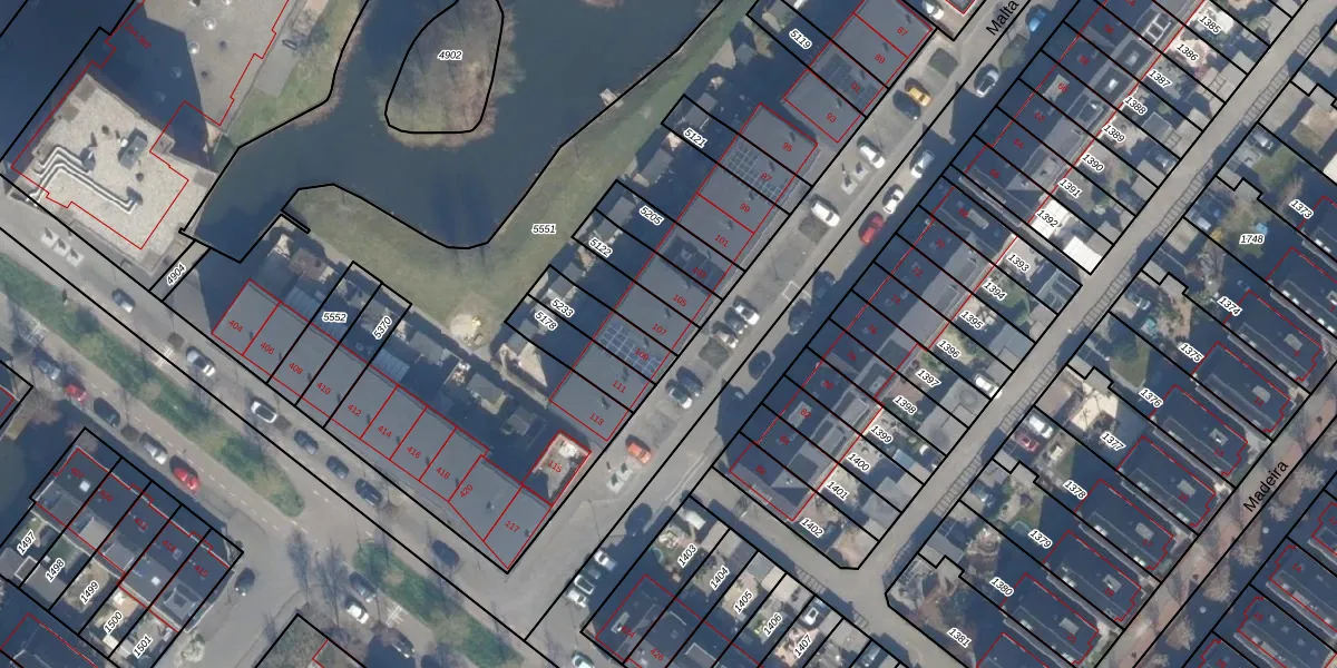 Het perceel waarop Malta 107 staat heeft een oppervlakte van 3146 m². Dit is een zeer groot perceel. De perceeloppervlakte wordt geregistreerd door het Kadaster. Gedetailleerde informatie over de maten van dit perceel kunt u vinden in het rapport Kadastrale kaart met maatvoering van Malta 107.