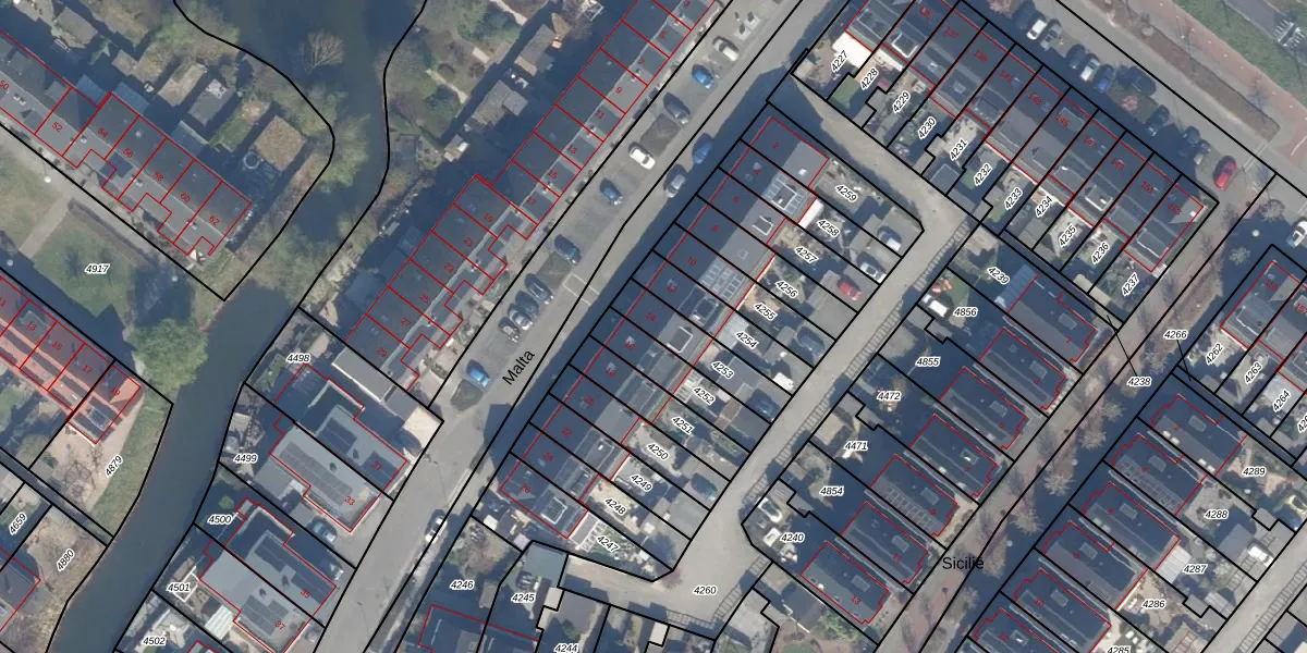 Het perceel waarop Malta 14 staat heeft een oppervlakte van 166 m². Dit is een middelgroot perceel. De perceeloppervlakte wordt geregistreerd door het Kadaster. Gedetailleerde informatie over de maten van dit perceel kunt u vinden in het rapport Kadastrale kaart met maatvoering van Malta 14.
