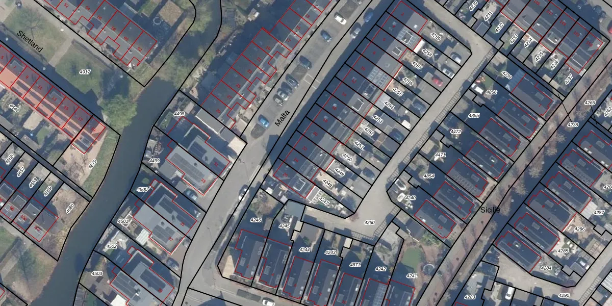 Het perceel waarop Malta 22 staat heeft een oppervlakte van 166 m². Dit is een middelgroot perceel. De perceeloppervlakte wordt geregistreerd door het Kadaster. Gedetailleerde informatie over de maten van dit perceel kunt u vinden in het rapport Kadastrale kaart met maatvoering van Malta 22.