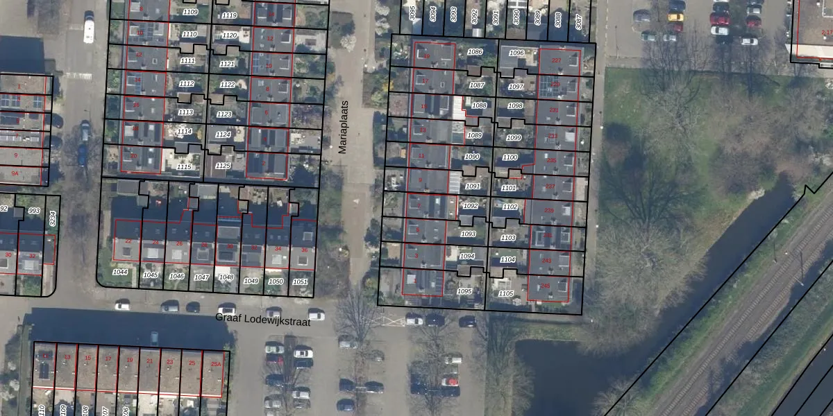 Gebruik de zoekbalk of klik op een perceel voor informatie over de adressen binnen dit perceel.