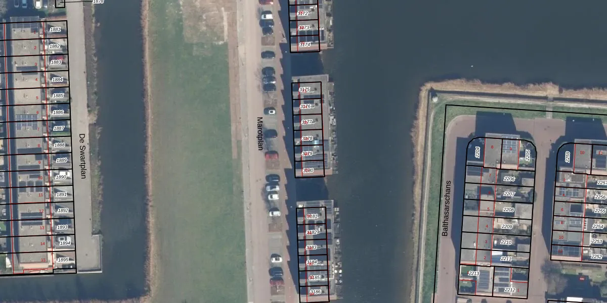 Het perceel waarop Marotplan 80 staat heeft een oppervlakte van 49 m². Dit is een klein perceel. De perceeloppervlakte wordt geregistreerd door het Kadaster. Gedetailleerde informatie over de maten van dit perceel kunt u vinden in het rapport Kadastrale kaart met maatvoering van Marotplan 80.