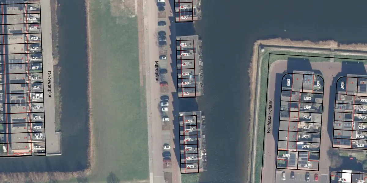Gebruik de zoekbalk of klik op een perceel voor informatie over de adressen binnen dit perceel.