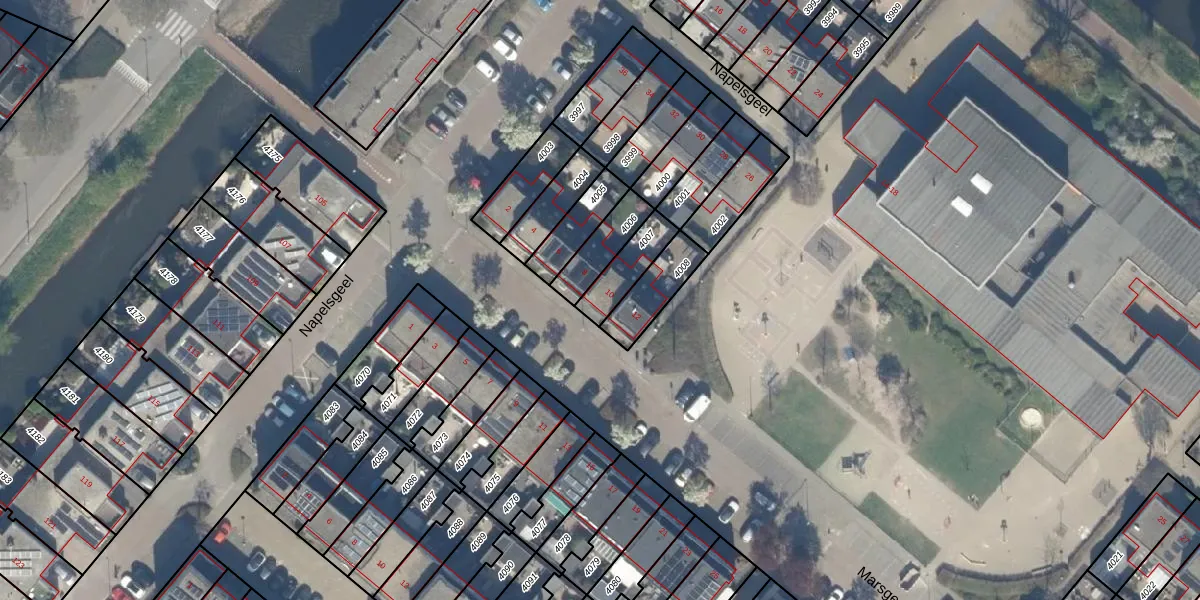 Gebruik de zoekbalk of klik op een perceel voor informatie over de adressen binnen dit perceel.