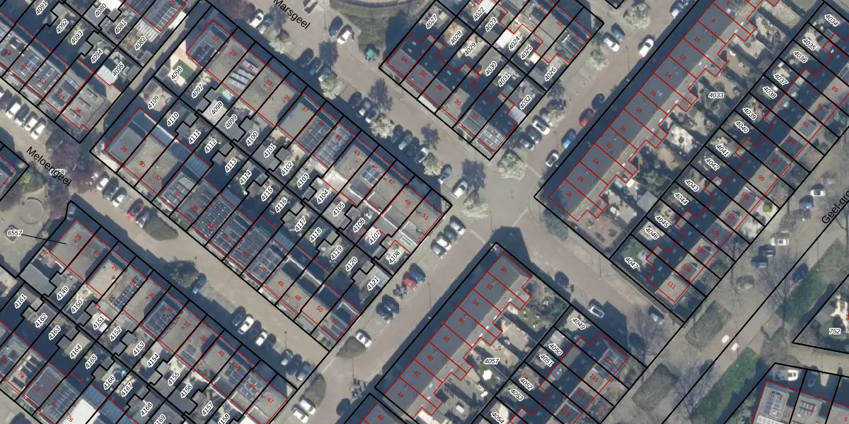 Gebruik de zoekbalk of klik op een perceel voor informatie over de adressen binnen dit perceel.