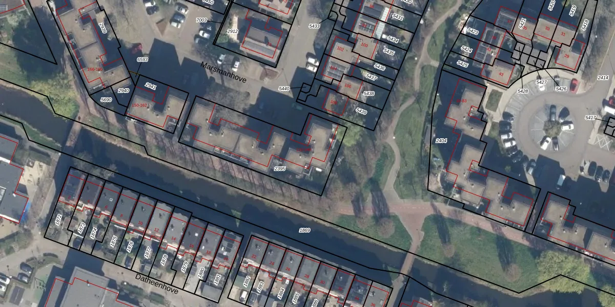 Het perceel waarop Marsmanhove 120 staat heeft een oppervlakte van 901 m². Dit is een groot perceel. De perceeloppervlakte wordt geregistreerd door het Kadaster. Gedetailleerde informatie over de maten van dit perceel kunt u vinden in het rapport Kadastrale kaart met maatvoering van Marsmanhove 120.