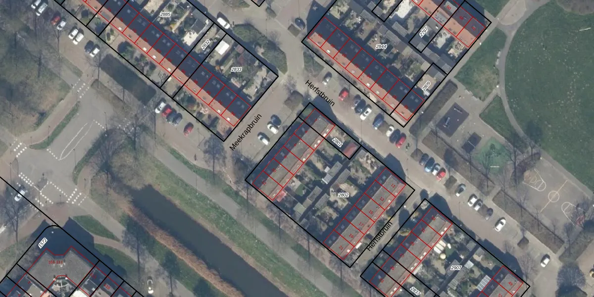 Het perceel waarop Meekrapbruin 6 staat heeft een oppervlakte van 1426 m². Dit is een zeer groot perceel. De perceeloppervlakte wordt geregistreerd door het Kadaster. Gedetailleerde informatie over de maten van dit perceel kunt u vinden in het rapport Kadastrale kaart met maatvoering van Meekrapbruin 6.