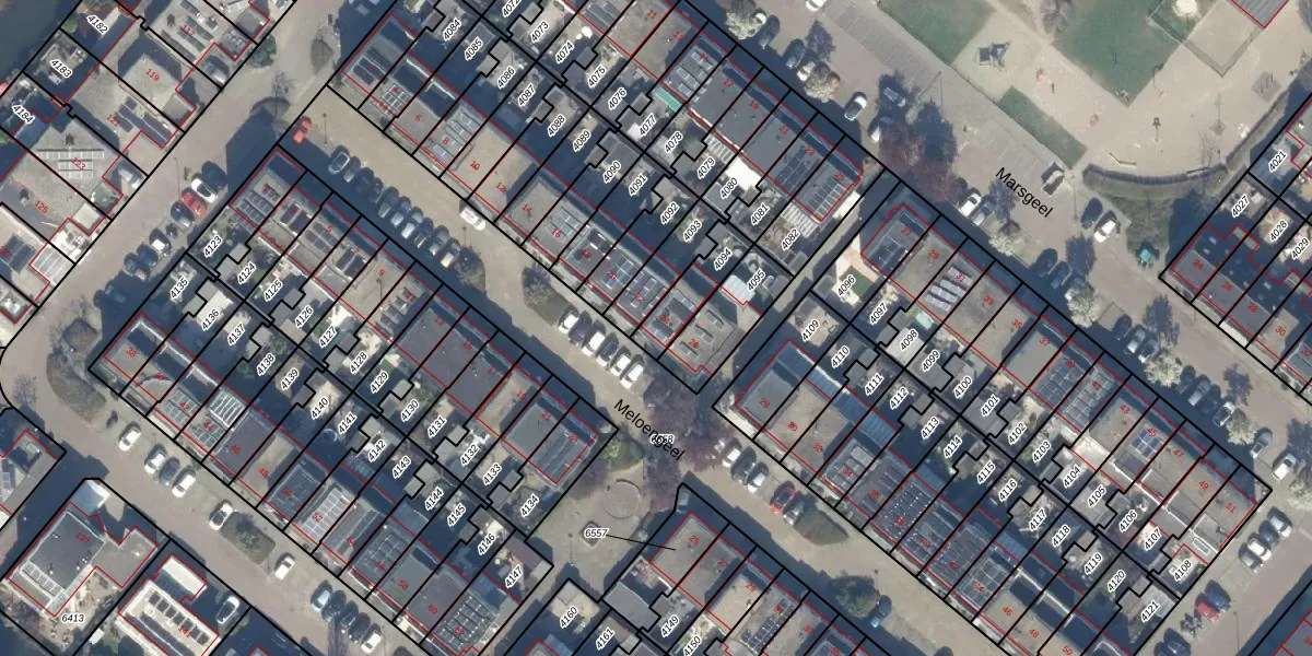 Het perceel waarop Meloengeel 24 staat heeft een oppervlakte van 126 m². Dit is een middelgroot perceel. De perceeloppervlakte wordt geregistreerd door het Kadaster. Gedetailleerde informatie over de maten van dit perceel kunt u vinden in het rapport Kadastrale kaart met maatvoering van Meloengeel 24.